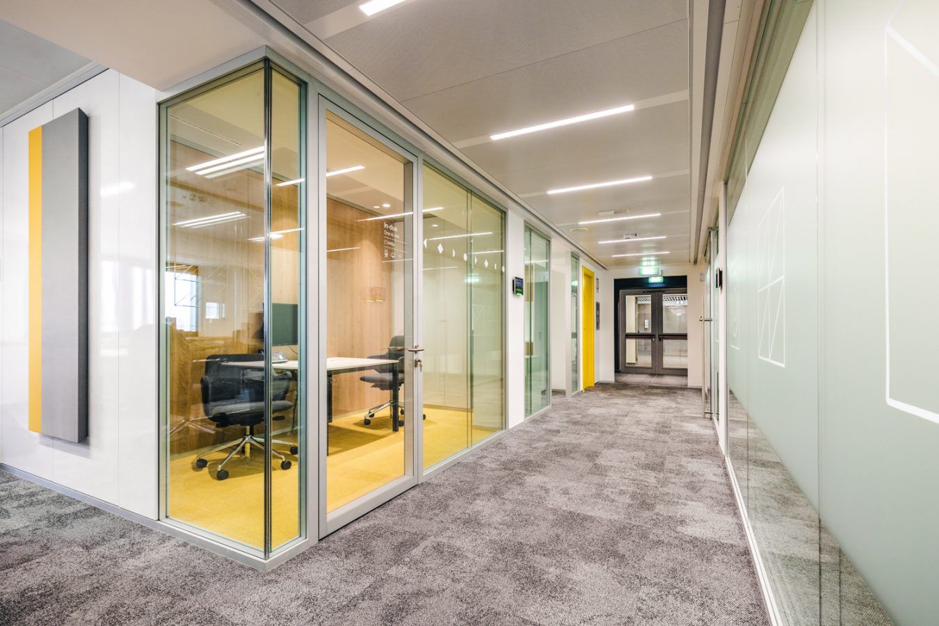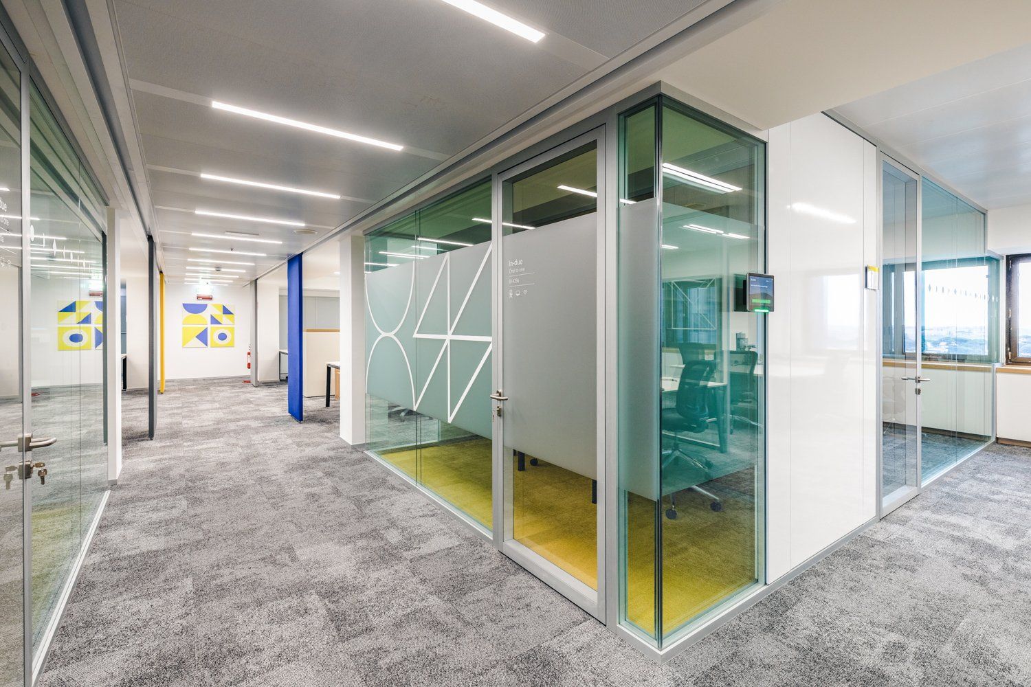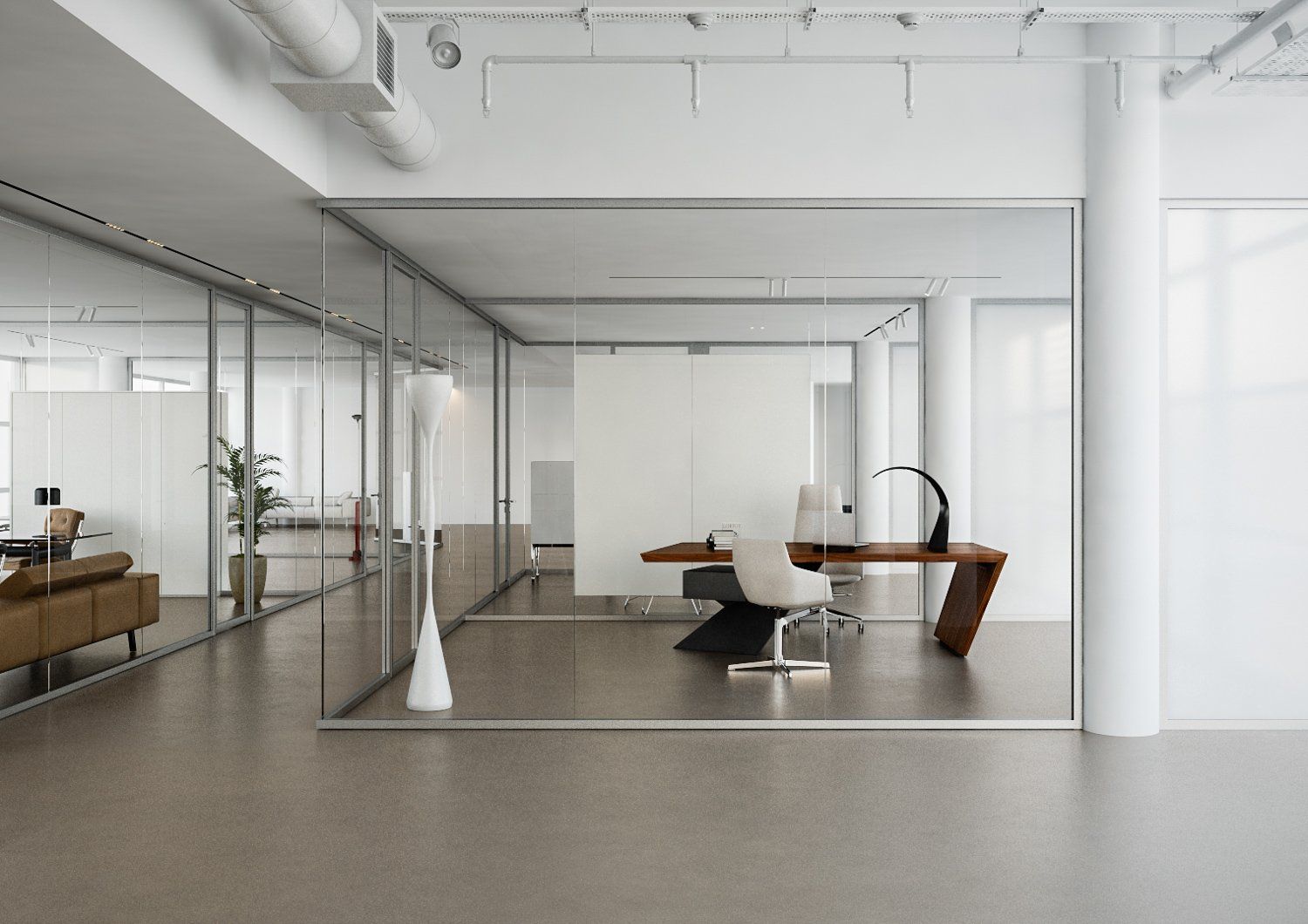 Il sistema di pareti mobili divisorie certificate e brevettate a vetrata continua con profilo guida universale che consente l’inserimento di pannelli ciechi in acciaio o in legno di 18 mm di spessore. Il profilo, in alluminio anodizzato o verniciato, ha dimensioni 85 mm in larghezza e 45 mm in altezza e prevede l’inserimento di lastre in vetro con spessori che possono variare dai 10 ai 12 mm. Lo stesso profilo può contenere una struttura in acciaio per la predisposizione di pannelli ciechi. Sistemi di livellazione consentono di correggere eventuali dislivelli.